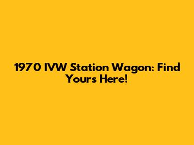 1970 IVW Station Wagon: Find Yours Here!