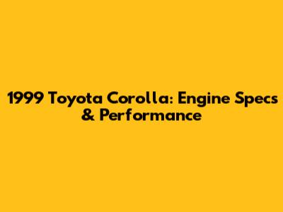 1999 Toyota Corolla: Engine Specs & Performance