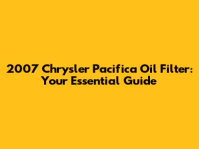 2007 Chrysler Pacifica Oil Filter: Your Guide