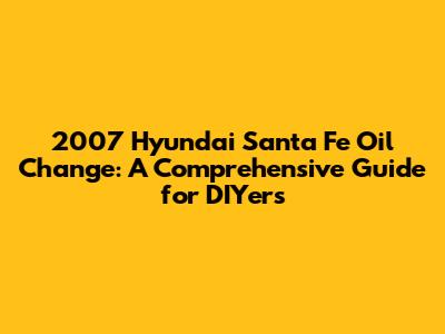 2007 Hyundai Santa Fe Oil Change: A Step-by-Step Guide