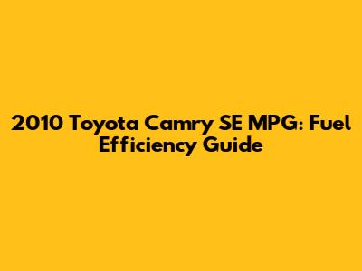 2010 Toyota Camry SE MPG: Fuel Efficiency Guide