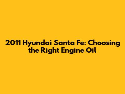 Choosing the right engine oil for your 2011 Hyundai Santa Fe is an investment in its long-term health and performance. By understanding the basics of engine oil, following the manufacturer's recommendations, and using high-quality products, you can keep your Santa Fe running smoothly and reliably for many years to come. Happy driving!