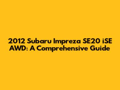 2012 Subaru Impreza SE20 ISE AWD: A Comprehensive Guide