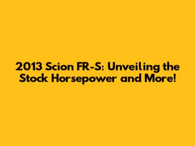 2013 Scion FR-S: Unveiling the Stock Horsepower and More!