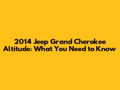 2014 Jeep Grand Cherokee Altitude: What You Need To Know