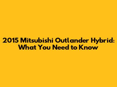 2015 Mitsubishi Outlander Hybrid: What You Need To Know