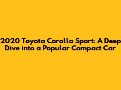 Hey car enthusiasts! Today, we're diving deep into the 2020 Toyota Corolla Sport, a vehicle that continues to turn heads and win hearts in the compact car market. This model year brought some exciting updates and features, making it a strong contender for anyone seeking a reliable, fuel-efficient, and stylish ride. We'll be covering everything from its engine and performance to its interior, safety features, and overall value. So, buckle up, guys, and let's explore what makes the 2020 Corolla Sport a standout choice!