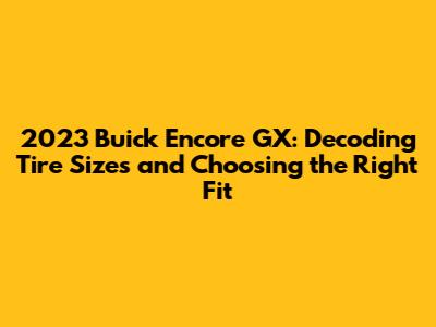 Hey there, car enthusiasts! Let's dive into the world of tires for the 2023 Buick Encore GX. Understanding your tire size is super important, not just for safety, but also for the overall performance and look of your ride. Finding the perfect fit ensures a smooth, efficient, and enjoyable driving experience. So, buckle up, and let's unravel everything you need to know about 2023 Buick Encore GX tire sizes!