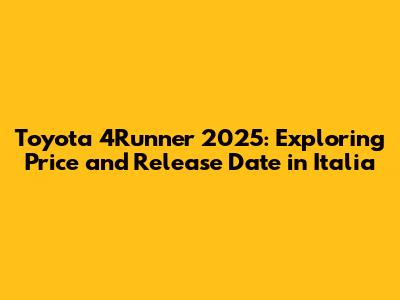 The Toyota 4Runner has always been a fan favorite, and the buzz around the 2025 model is reaching a fever pitch, especially in Italia. Guys, if you're anything like me, you're probably itching to know when this beast will hit the Italian roads and, more importantly, what it's going to cost you. Let's dive deep into what we know so far, separating fact from fiction, and give you a comprehensive look at the 2025 Toyota 4Runner situation in Italia. The 2025 Toyota 4Runner is highly anticipated in Italia, generating considerable excitement among car enthusiasts. Its rugged design and off-road capabilities make it an appealing option for those seeking adventure and reliability. As the release date approaches, potential buyers are eager to learn about the pricing details and availability in the Italian market. The Toyota 4Runner has a strong reputation for durability and performance, making it a popular choice for both daily commuting and off-road excursions. With the new model on the horizon, there is much speculation and anticipation surrounding its features and specifications. The 2025 Toyota 4Runner is expected to bring some exciting updates and improvements, further enhancing its appeal to customers in Italia. Whether you're a seasoned off-roader or simply looking for a reliable and capable SUV, the 2025 Toyota 4Runner is definitely worth keeping an eye on. The combination of ruggedness, reliability, and modern features makes it a compelling option in the SUV market. As more information becomes available, we will continue to update this guide with the latest details on pricing, release date, and specifications for the Italian market. So, stay tuned and get ready to experience the 2025 Toyota 4Runner in all its glory. This vehicle promises to deliver an exceptional driving experience, whether you're navigating city streets or exploring the scenic landscapes of Italia. With its blend of performance, comfort, and style, the 2025 Toyota 4Runner is poised to make a significant impact on the Italian automotive scene.
