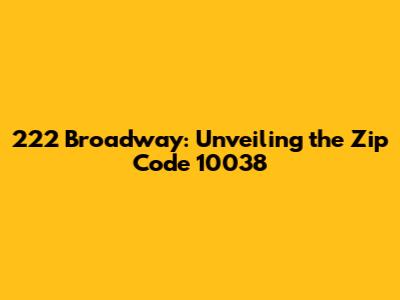 Hey guys! Ever wondered about the pulse of New York City and the significance of its addresses? Today, we're diving deep into 222 Broadway, a landmark building in the heart of the Financial District, and, importantly, its associated zip code: 10038. This guide is your ultimate key to unlocking all sorts of cool information, from the area's history and the vibe of the neighborhood to practical stuff like finding your way around and understanding the significance of the zip code itself. So, buckle up! Let's explore the ins and outs of 222 Broadway and its prime location in lower Manhattan.