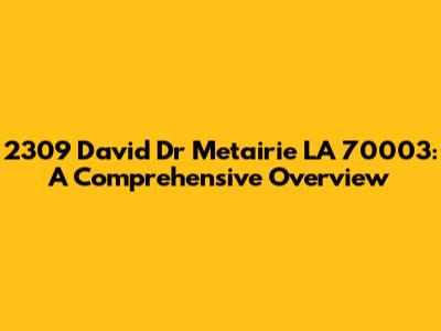 Let's dive into the details of 2309 David Dr, Metairie, LA 70003. This article provides a comprehensive overview of the property, offering insights into its key features, location advantages, and overall appeal. Whether you're a potential buyer, a neighbor, or simply curious about real estate in Metairie, this guide aims to provide you with valuable information.