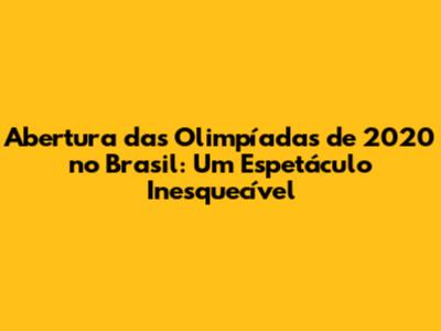 Abertura Das Olimpíadas De 2020 No Brasil: Um Resumo Completo