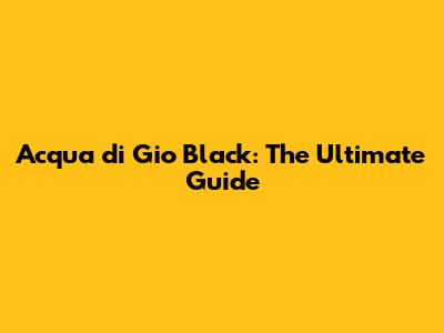 Acqua Di Gio Black: The Ultimate Guide