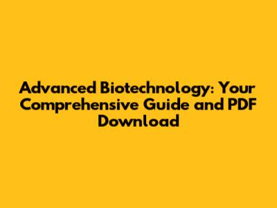 Advanced Biotechnology: Guide & PDF Download