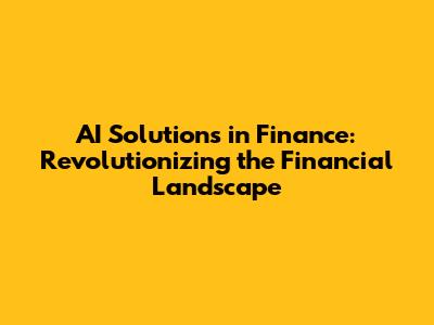 AI Solutions In Finance: A Game Changer