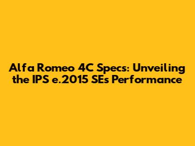Alfa Romeo 4C Specs: Unveiling The IPS E.2015 SE's Performance
