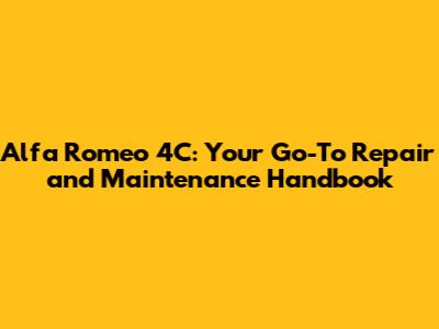Alfa Romeo 4C: Your Go-To Repair And Maintenance Handbook