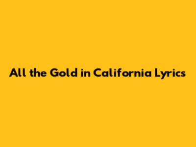 All The Gold In California: Lyrics And Meaning