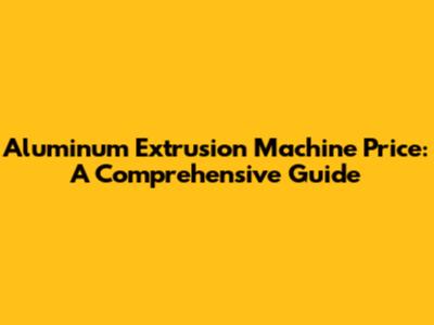 Aluminum Extrusion Machine Price: A Comprehensive Guide