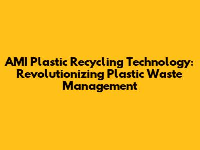 AMI Plastic Recycling: Innovative Solutions & Technologies