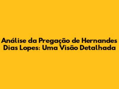 Análise Da Pregação De Hernandes Dias Lopes: Uma Visão Detalhada