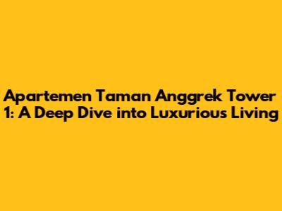 Apartemen Taman Anggrek Tower 1: Your Comprehensive Guide