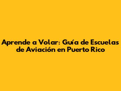 Aprende A Volar: Guía De Escuelas De Aviación En Puerto Rico