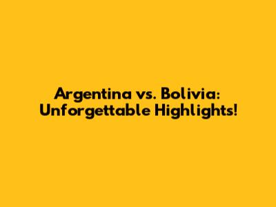 Argentina Vs. Bolivia: Unforgettable Highlights!