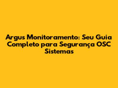 Argus Monitoramento: Seu Guia Completo Para Segurança OSC Sistemas
