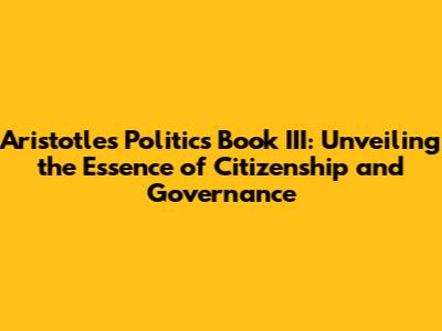 Aristotle's *Politics* Book III: A Deep Dive