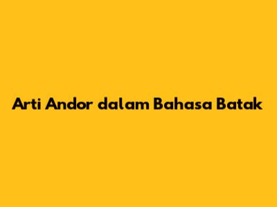 Arti Andor Dalam Bahasa Batak