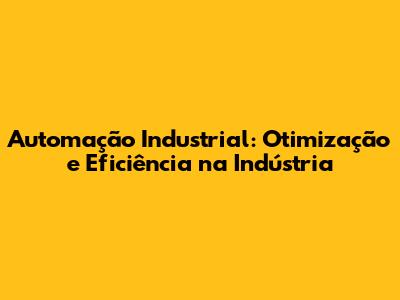 Automação Industrial: Otimização E Eficiência Na Indústria