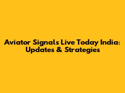 Aviator Signals Live Today India: Updates & Strategies