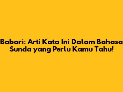 Bahasa Sunda, dengan segala keindahan dan kekayaan budayanya, memiliki banyak kosakata unik yang mungkin belum kita ketahui. Salah satunya adalah kata "babari". Nah, dalam artikel ini, kita akan membahas secara mendalam babari artinya dalam Bahasa Sunda. Penasaran? Yuk, simak terus!