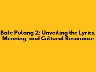 Bale Pulang 2: Lyrics, Meaning, And Cultural Significance