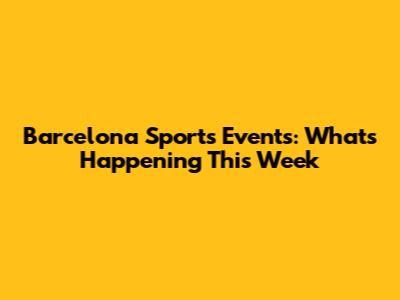 Barcelona Sports Events: What's Happening This Week