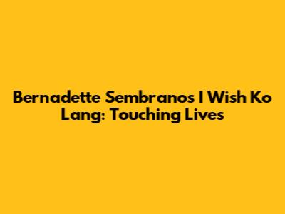Hey guys! Let's dive into the heartwarming world of "I Wish Ko Lang" hosted by the amazing Bernadette Sembrano. This show isn't just another TV program; it's a beacon of hope, a platform for dreams, and a testament to the power of human kindness. Seriously, if you're looking for something that'll restore your faith in humanity, you've come to the right place. Bernadette, with her genuine empathy and heartfelt approach, guides us through stories of struggle, resilience, and ultimately, triumph. It’s the kind of show that leaves you feeling all warm and fuzzy inside, reminding you that even in the face of adversity, there's always room for hope and a helping hand.