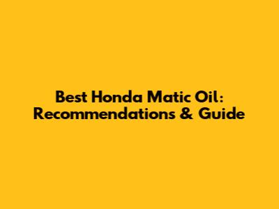 Best Honda Matic Oil: Recommendations & Guide