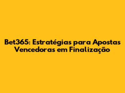 Bet365: Estratégias Para Apostas Vencedoras Em Finalização