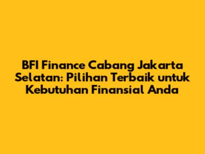 BFI Finance Cabang Jakarta Selatan: Solusi Keuangan Terpercaya