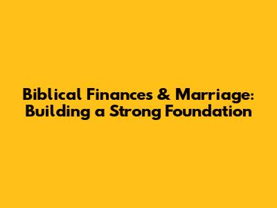 Biblical Finances & Marriage: Building A Strong Foundation