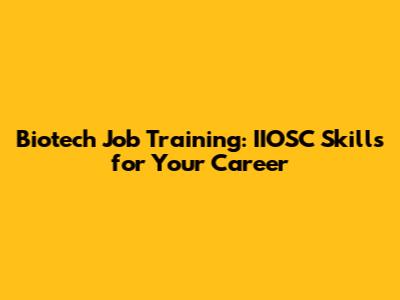 Biotech Job Training: IIOSC Skills For Your Career