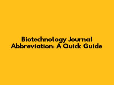 Biotechnology Journal Abbreviation: A Quick Guide
