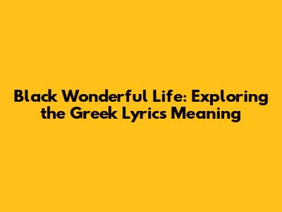 Black Wonderful Life: Exploring The Greek Lyrics Meaning