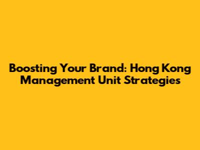 Boosting Your Brand: Hong Kong Management Unit Strategies