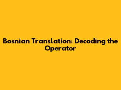 Bosnian Translation: Decoding The Operator