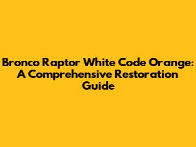 Bronco Raptor White Code Orange: Guide To Restoration