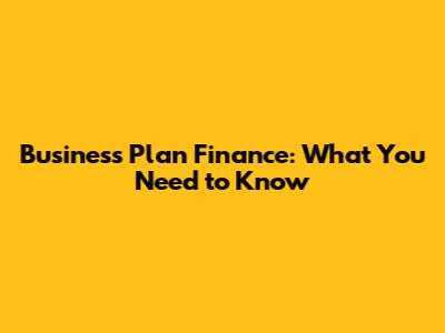 Business Plan Finance: What You Need To Know