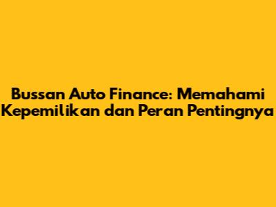 Bussan Auto Finance: Kepemilikan Dan Seluk Beluknya