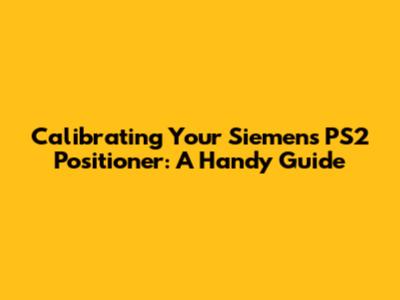 Calibrating Your Siemens PS2 Positioner: A Handy Guide